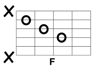 下の図のようなバレーコードではない簡易的なFコードから始めた方がいいです。