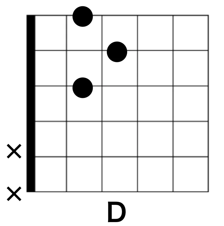 DコードはCやGと並んで最もよく出てくるメジャーコードの一つです。握り込むようにして押さえるフォームになるのが特徴的ですね。