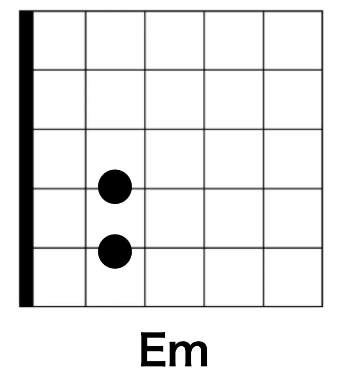 Em(Eマイナー)コードは、わずか2本の指だけで押さえることができるため、初心者にとって非常に覚えやすいコードです。CやG、Dと組み合わせて使うと、シンプルながらそれだけで曲っぽくなってきますよ。