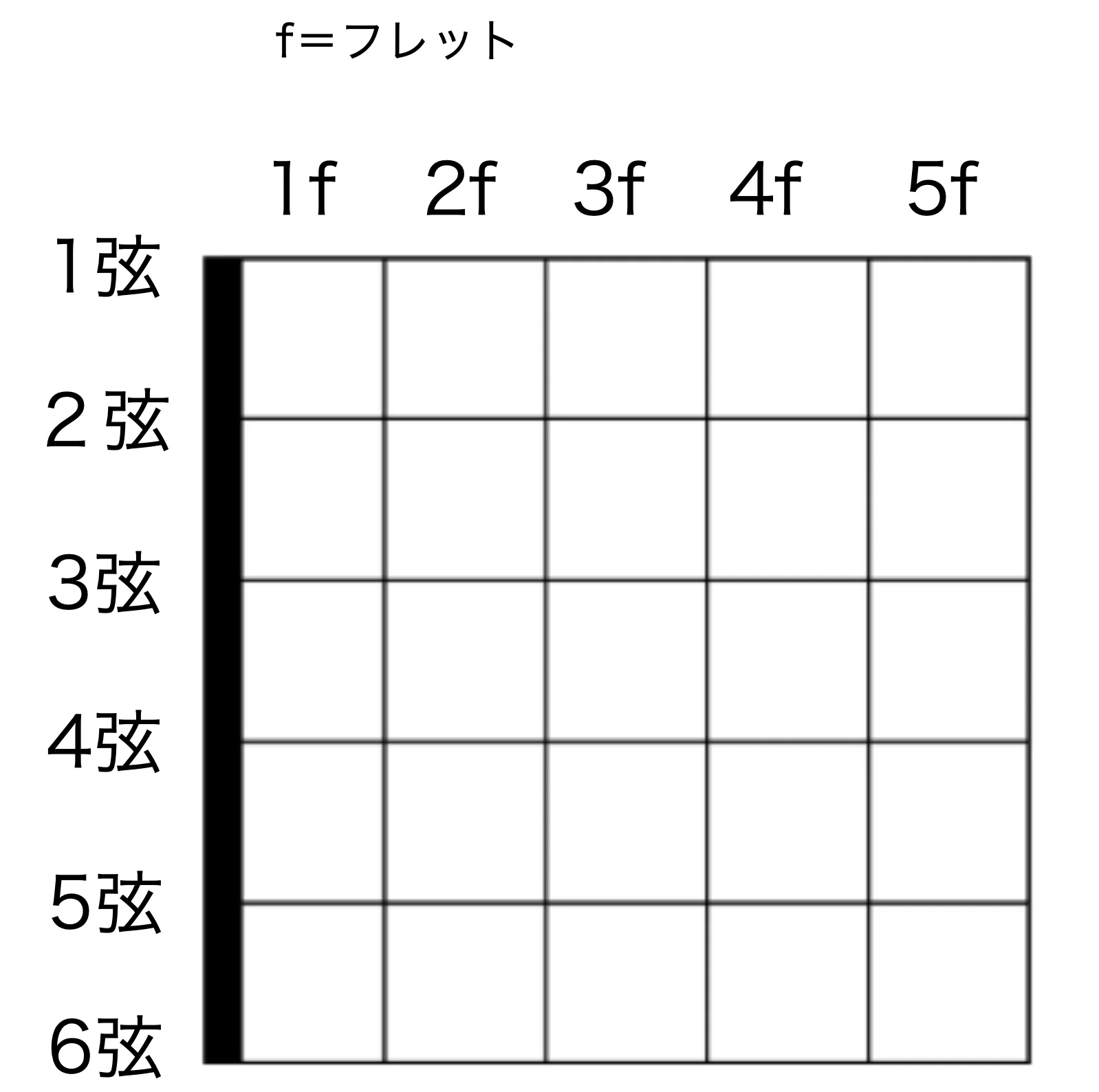 上の図はギターの指板を表した図になります。1弦がいちばん細い弦で6弦が一番太い弦になります。